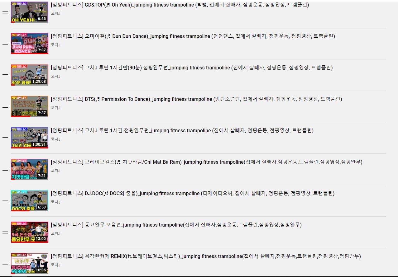 점핑운동에 관련된 다양한 영상들이 가득합니다!