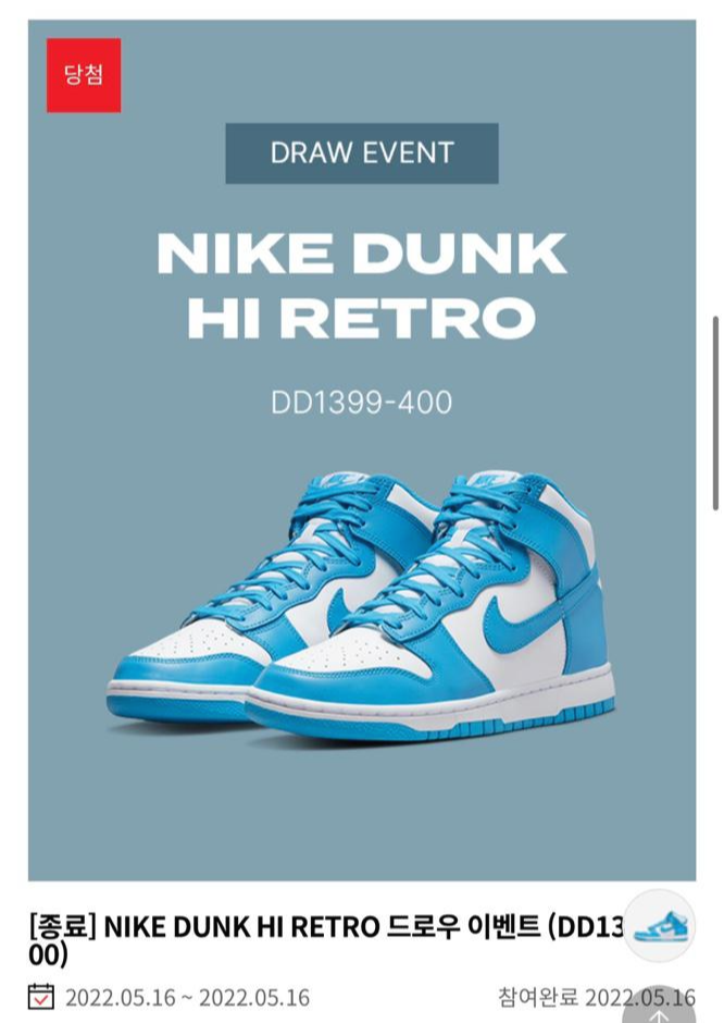 '나이키 덩크 하이 챔피언쉽 블루'가 당첨되었습니다!
