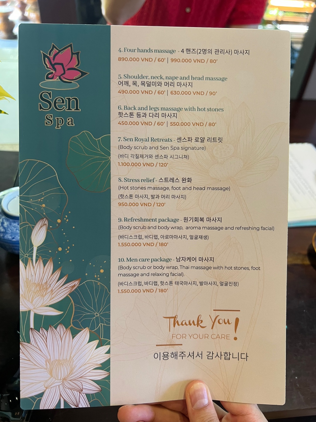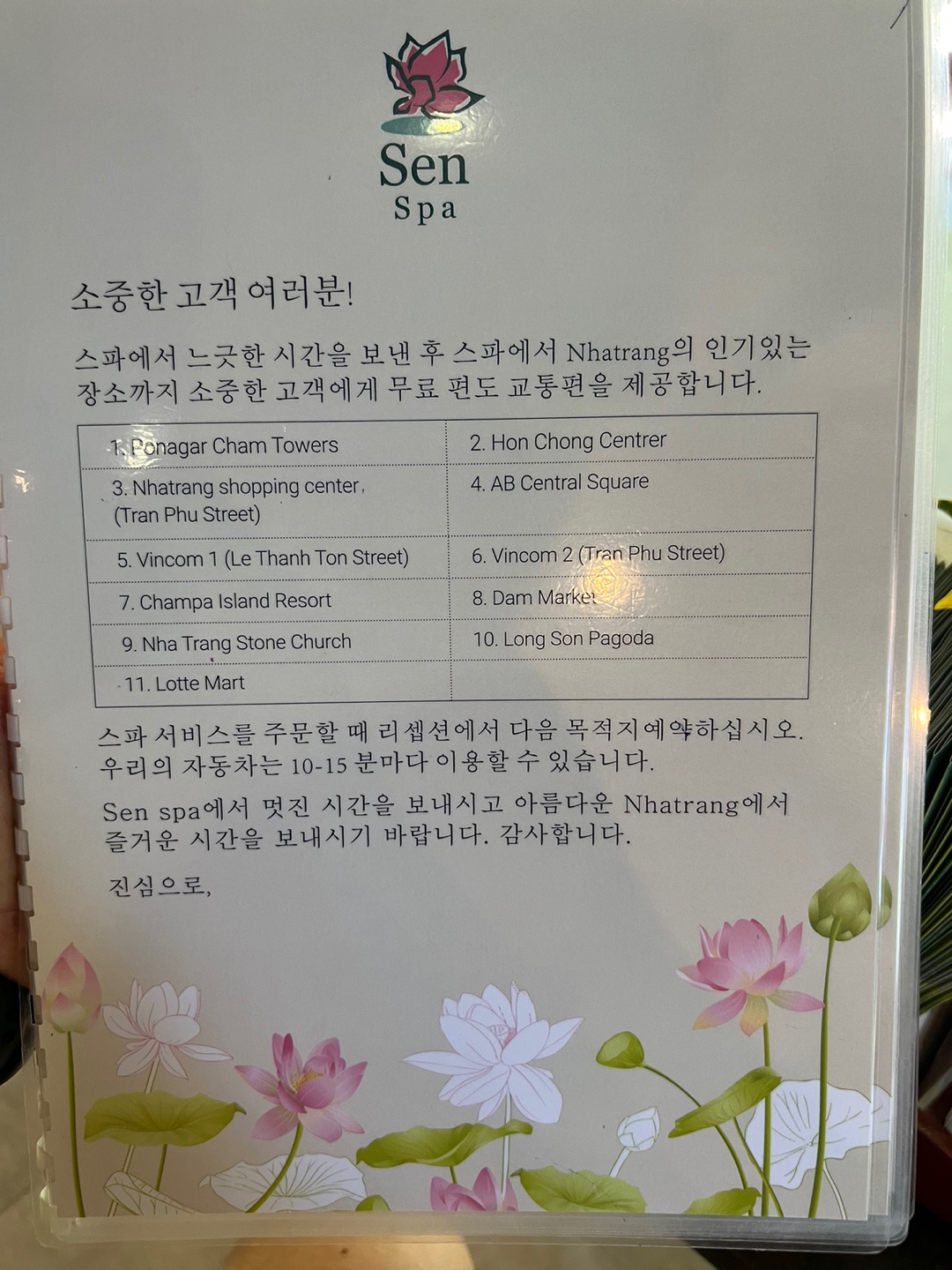 (마사지 끝난후 Sen Spa 픽업 서비스를 이용해