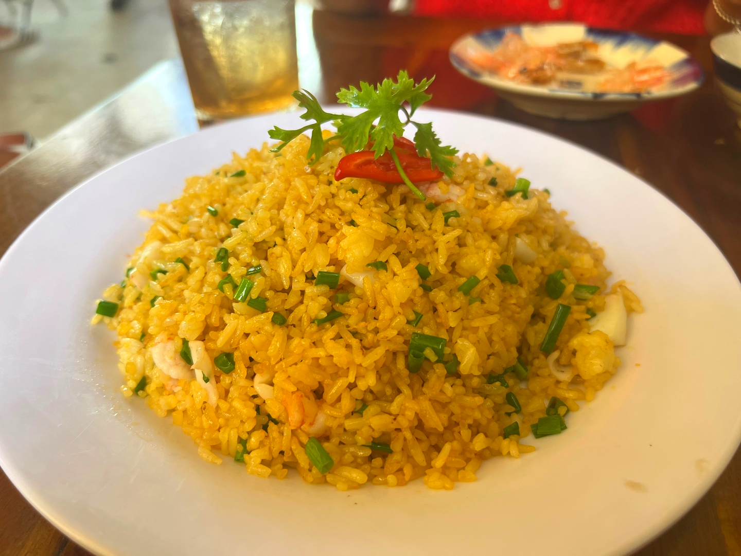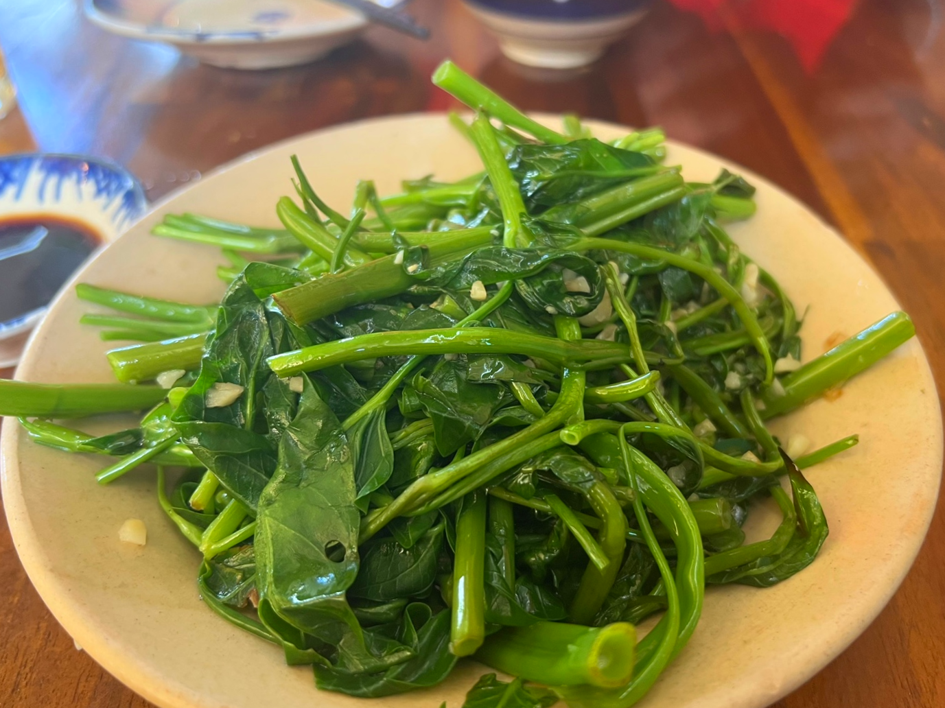 저희는 모닝글로리볶음, 볶음밥, 새우튀김요리