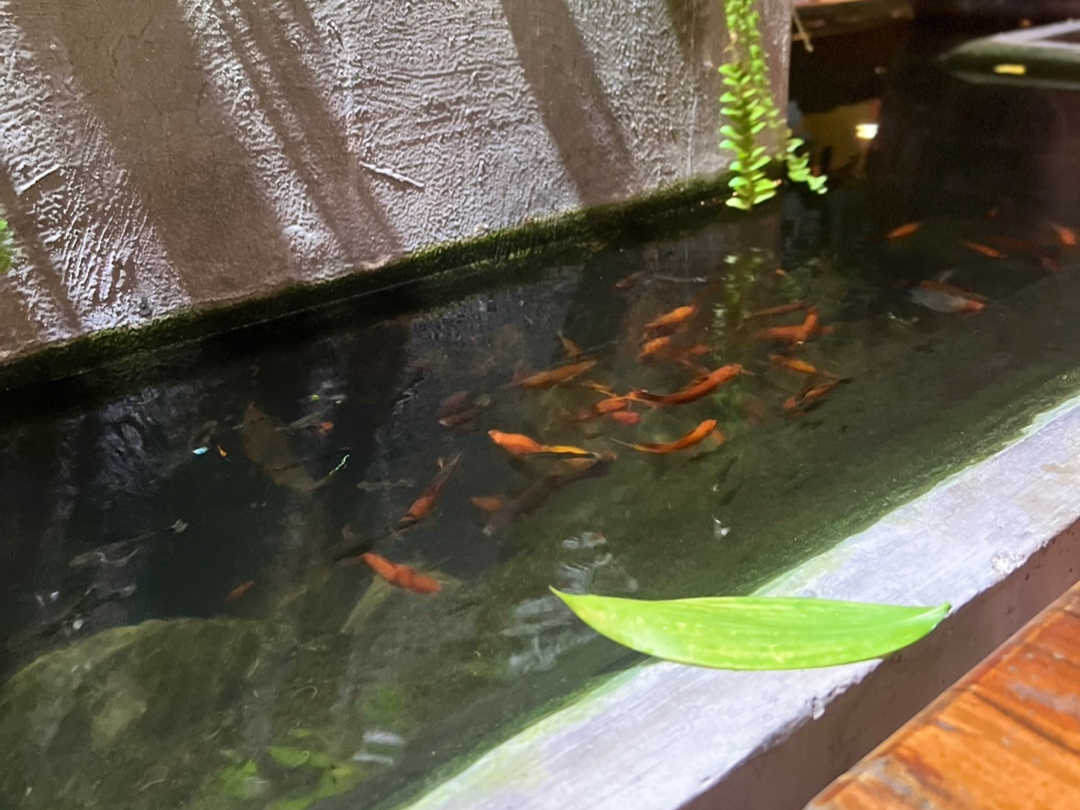 물고기들이 테이블 옆에서 헤엄치는데,