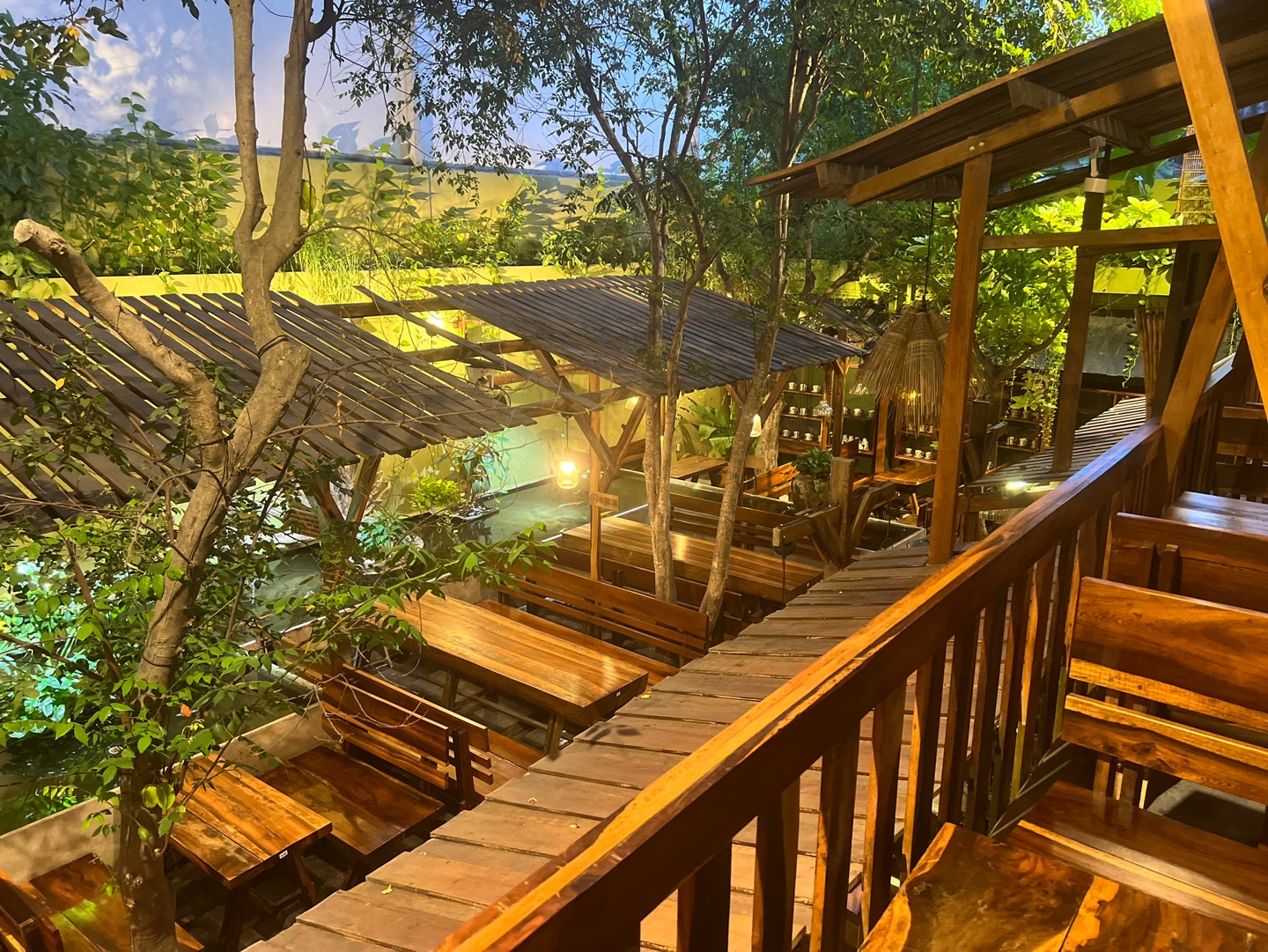 나무와 화분들이 풍성하게 있어서