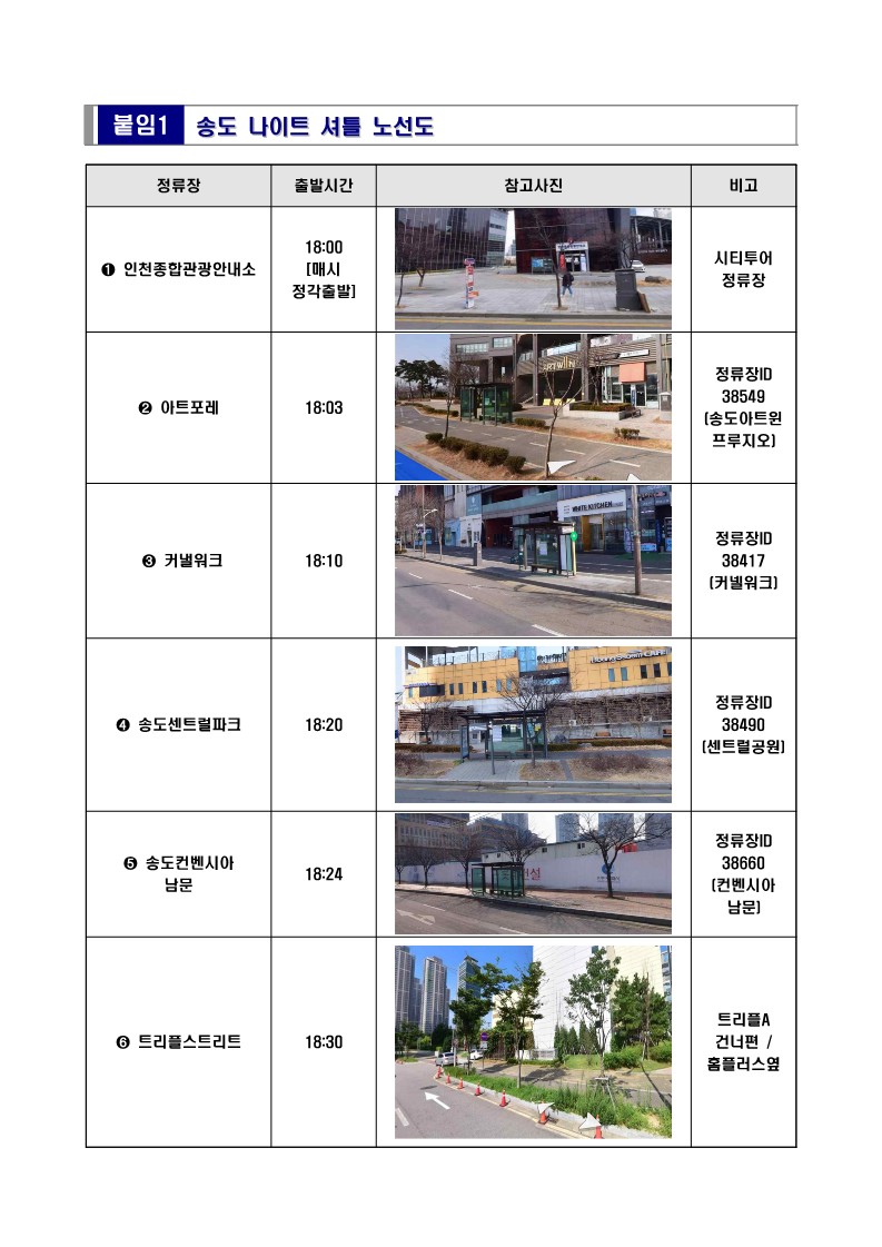 '송도 나이트 무료셔틀'은 선착순 탑승으로