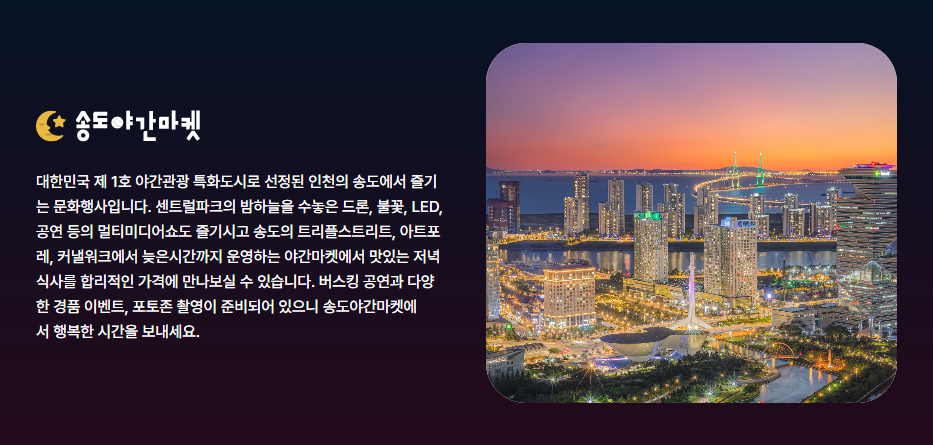 송도야간마켓에서 즐거운 추억 만드시길 바랍니다.