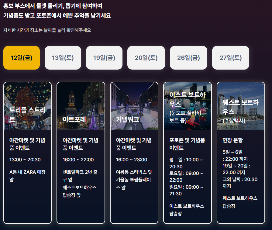 경품이벤트 일정은 송도야간마켓 홈페이지 내