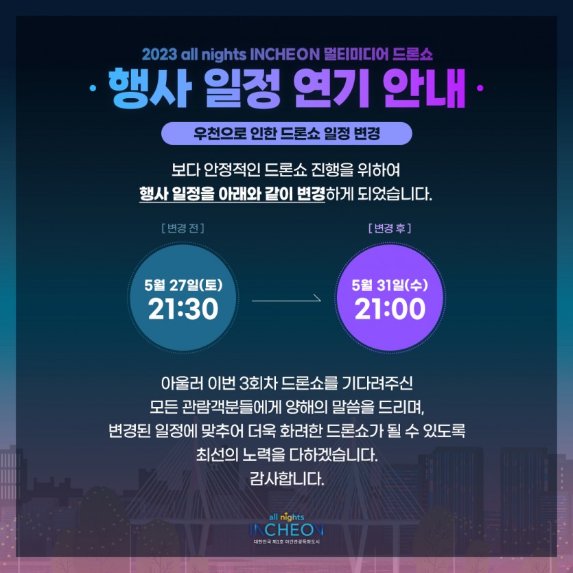 (우천으로 인한 드론쇼 일정변경)
