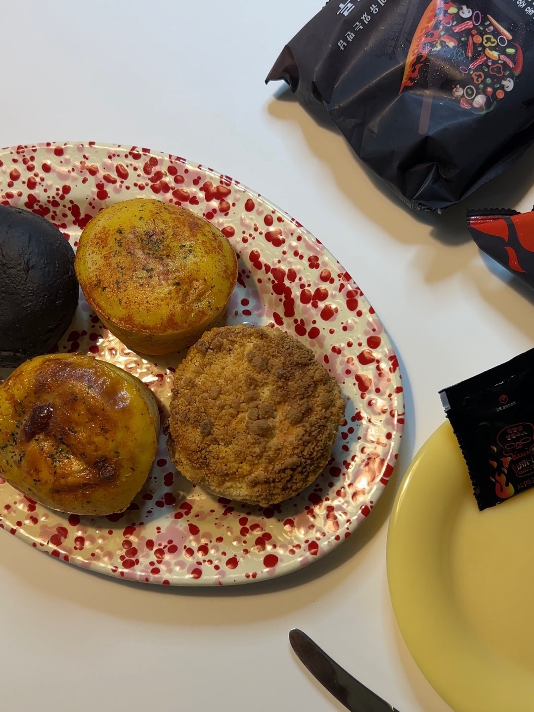 위에 붉은빛 도는게 핵짬뽕빵 (소스뿌리기전)