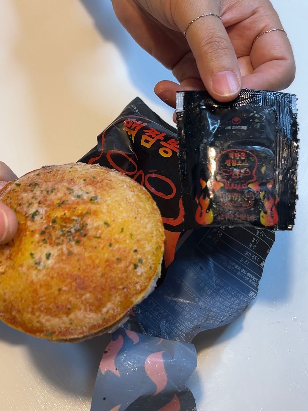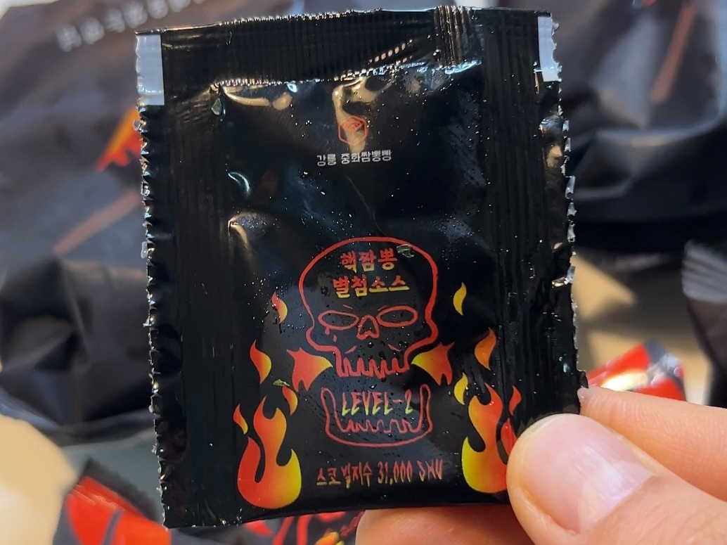 그 위에 핵짬뽕빵 별첨소스를 뿌려