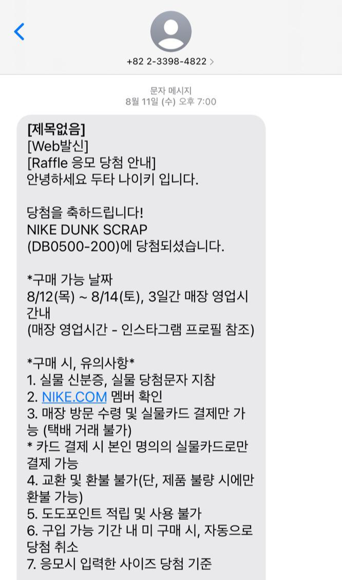 스니커즈를 나이키 두타 매장에서 당첨되어