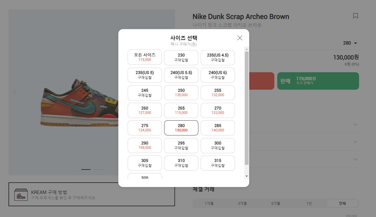 KREAM 사이트를 이용하여 시세를 살펴보니